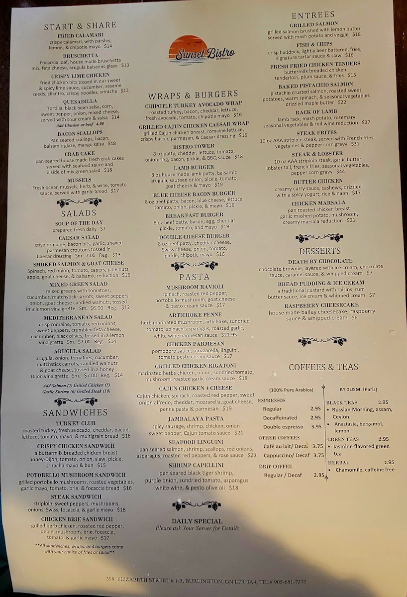 Make your plans to swing by this culinary haven; Sunset Bistro is waiting to serve you a slice of Canadian hospitality you won't soon forget!